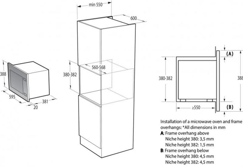 Габарити ніші для вбудовування:560-568 х 380-382 х 550 мм