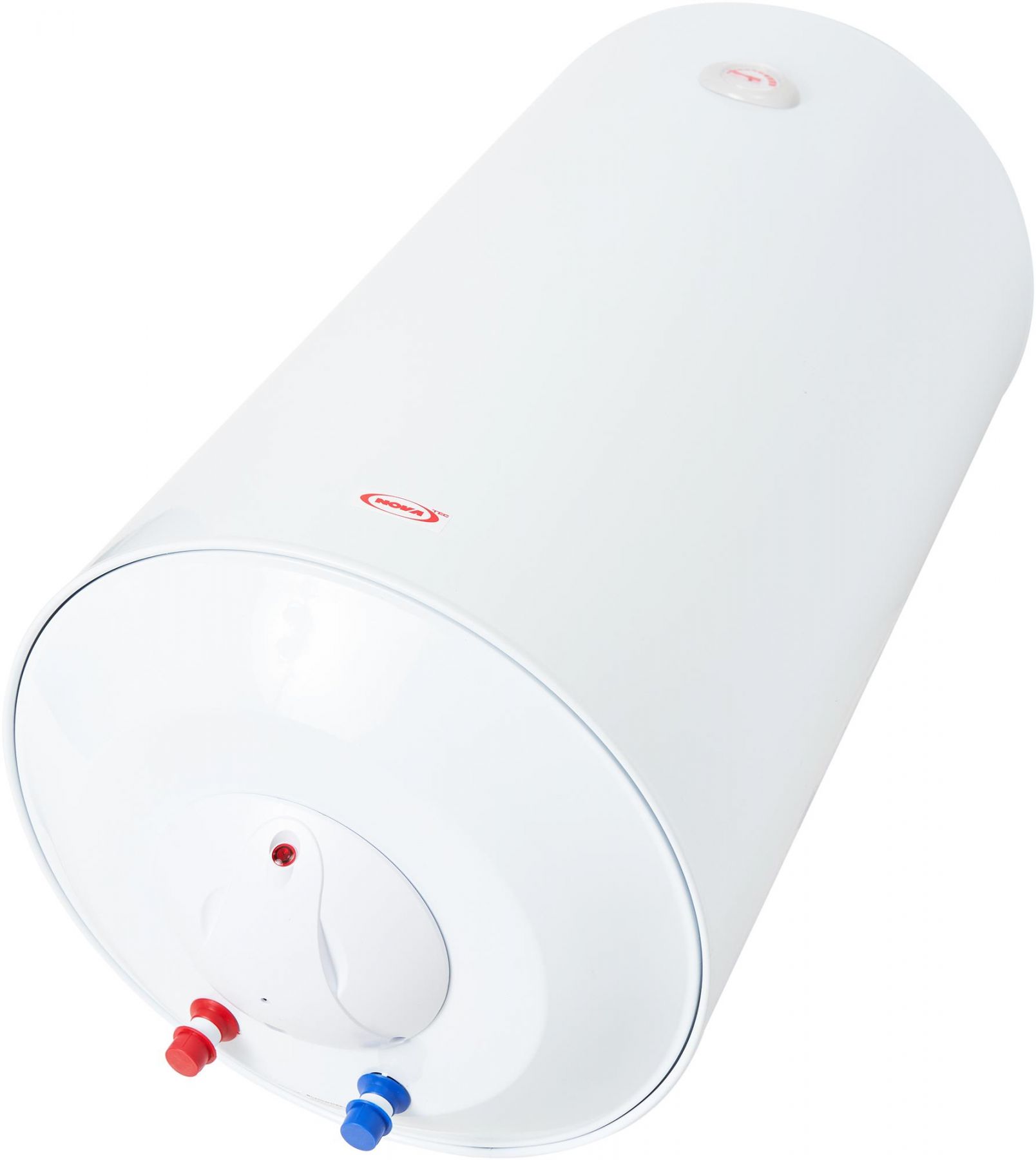 Циліндричний вертикальний бак білого кольору об'ємом 100 літрів здатний забезпечити достатнім запасом гарячої води сім'ю з 3-4 осіб. Металевий виріб зсередини покритий двошаровою титановою емаллю французького виробництва, що відрізняється чудовими антикорозійними властивостями, а також тривалий час дозволяє зберегти високу температуру води. Магнієвий анод надійно захищає бойлер від впливу агресивних речовин, які можуть бути присутніми у водопровідній воді, запобігає виникненню накипу, твердих опадів у баку. Завдяки чудовій теплоізоляції (товщина між сталевим корпусом та накопичувальним баком становить 2 мм), споживач зможе значно зменшити витрати на оплату електроенергії.
