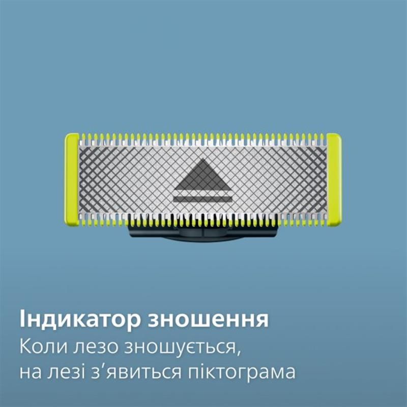Повторює контури вашого обличчя, забезпечуючи ще більш ефективне і комфортне гоління на будь-яких його ділянках. Сумісне з усіма моделями електростанків Philips OneBlade.