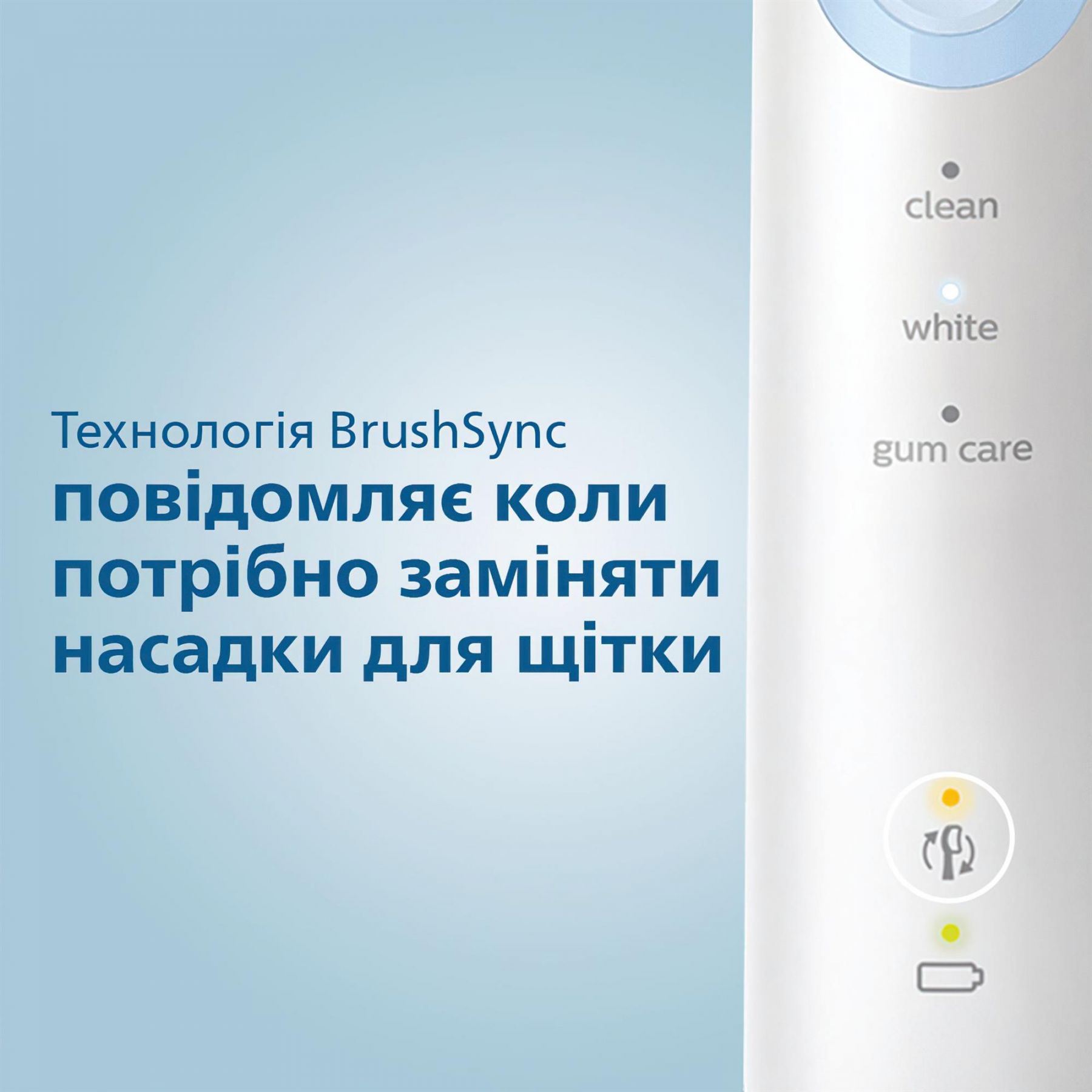 Насадки, що чистять, зношуються з часом, проте технологія BrushSync відстежує тривалість і інтенсивність використання насадки в цей період. Коли прийде час замінити насадку, індикатор загориться, а зубна щітка видасть короткий звуковий сигнал. Таким чином, ви завжди зможете максимально ефективно чистити зуби.