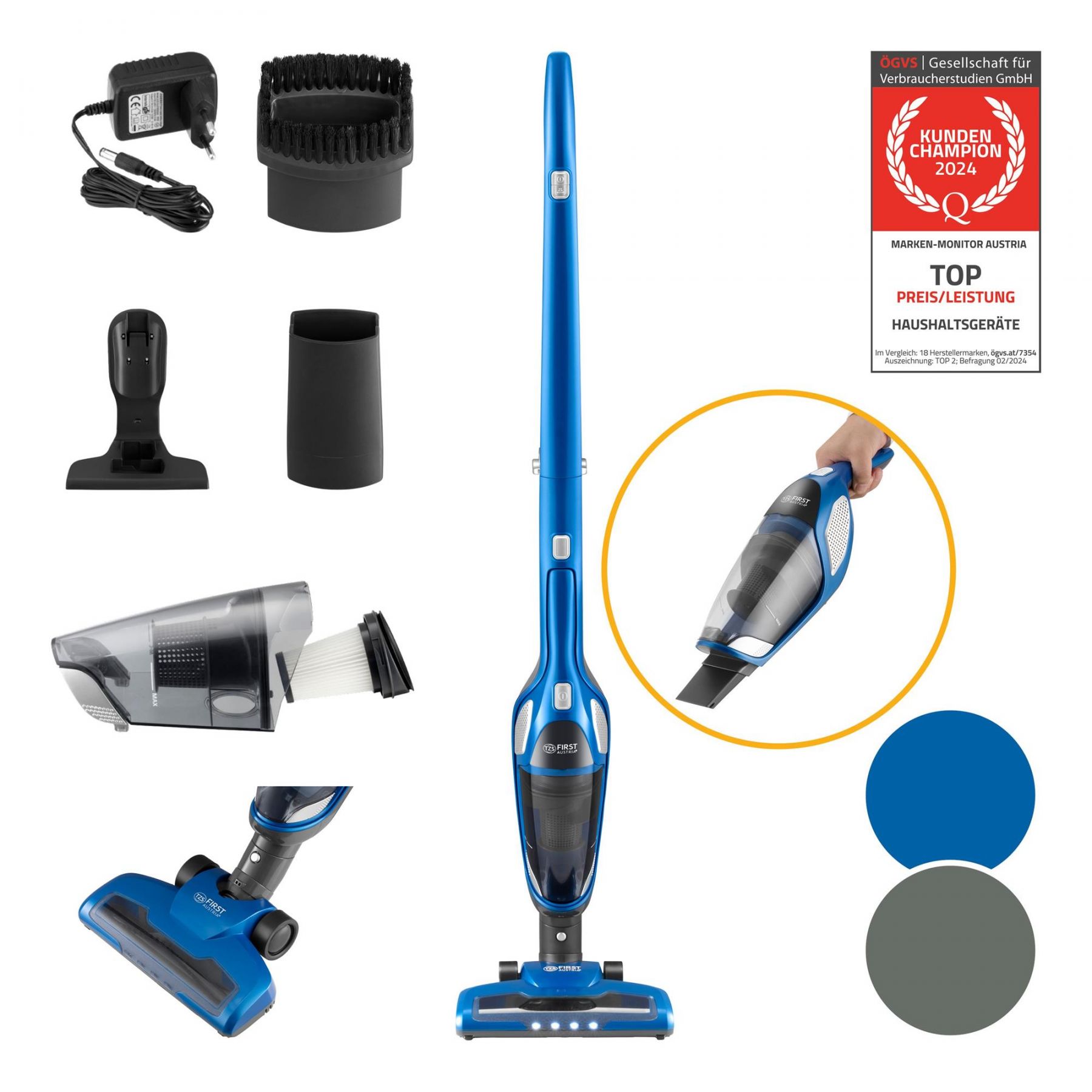 Універсальні аксесуари (що складаються із зарядної станції, щілинної насадки та насадки-щітки) доповнюють ваш досвід прибирання. Електрична щітка для підлоги зі світлодіодним підсвічуванням гарантує ретельне прибирання навіть у темних кутах і під меблями.