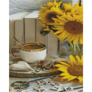 Алмазна картина Strateg ПРЕМІУМ Кава і соняшники розміром 40х50 см FA40892