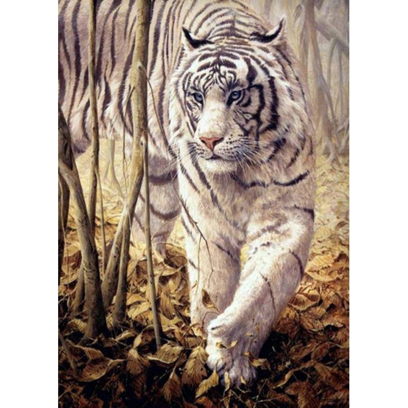 Алмазна мозаїка Strateg ПРЕМІУМ Білий тигр без підрамника розміром 30х40 см (GD86104)