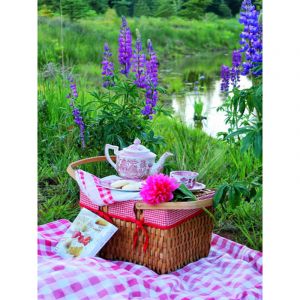 Алмазна мозаїка Strateg ПРЕМІУМ Чаювання серед люпину без підрамника розміром 30х40 см (JSDF79799)