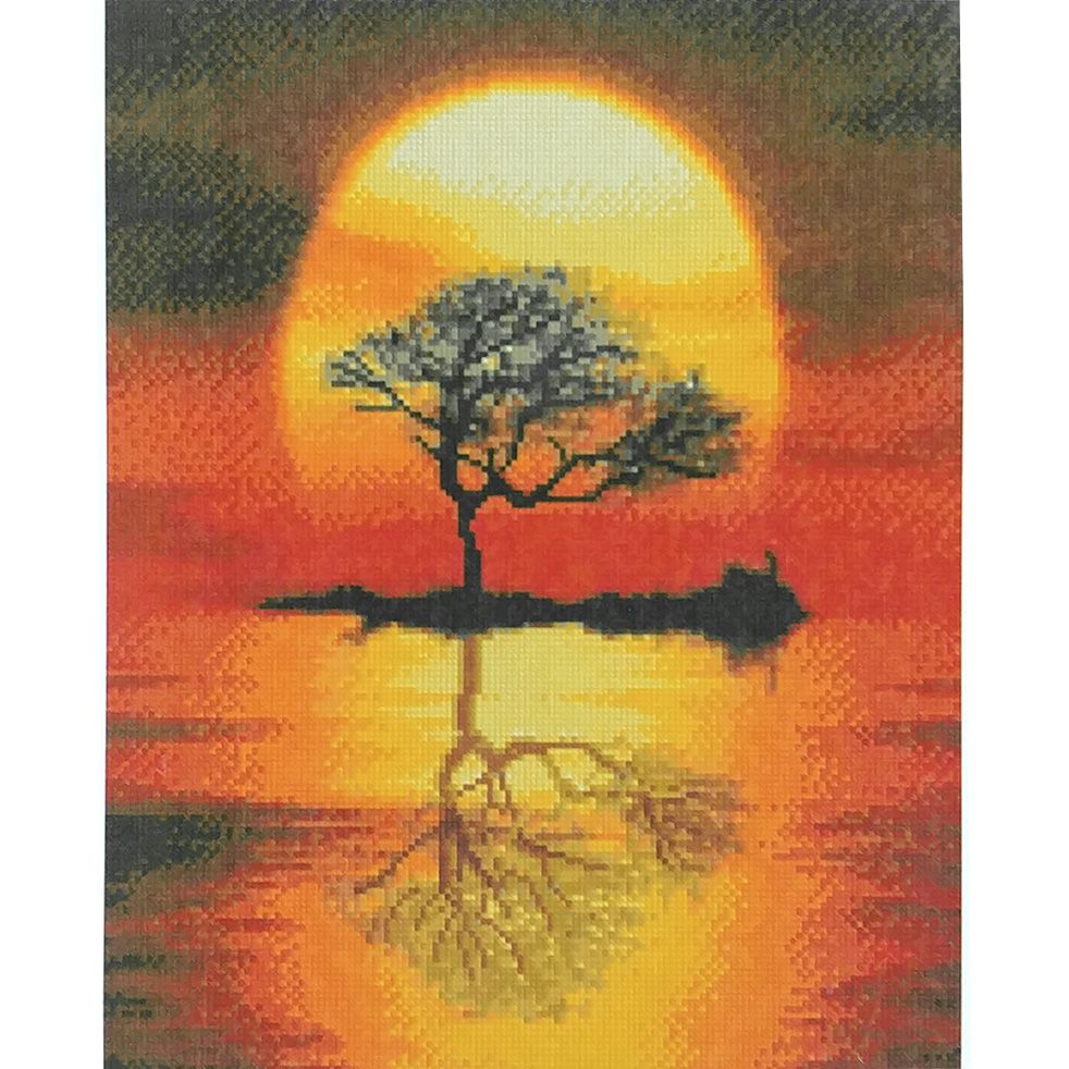 Алмазна мозаїка Strateg ПРЕМІУМ Дерево на заході сонця розміром 40х50 см (D0056) - складність 3, кількість кольорів - 26.