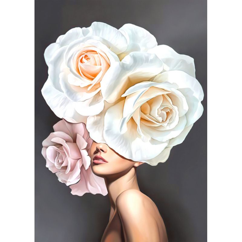 Алмазна мозаїка Strateg ПРЕМІУМ Дівчина троянда без підрамника розміром 30х40 см (JSDF82172)