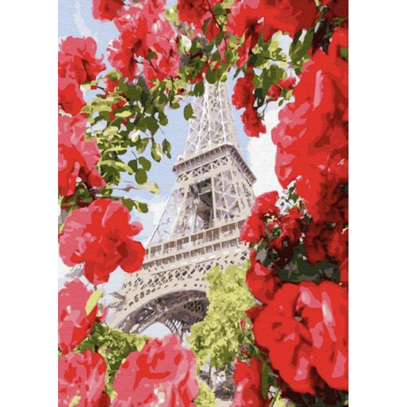 Алмазна мозаїка Strateg ПРЕМІУМ Ейфелева вежа серед троянд без підрамника розміром 30х40 см (GD86102)