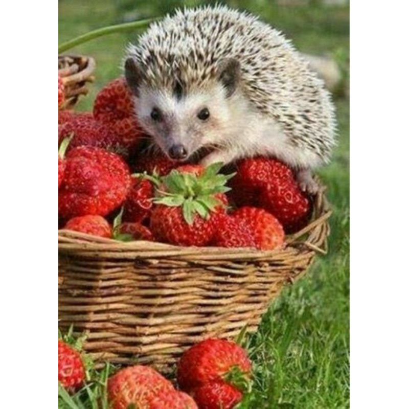 Алмазна мозаїка Strateg ПРЕМІУМ Їжачок та полуниця без підрамника розміром 30х40 см (GD86093)