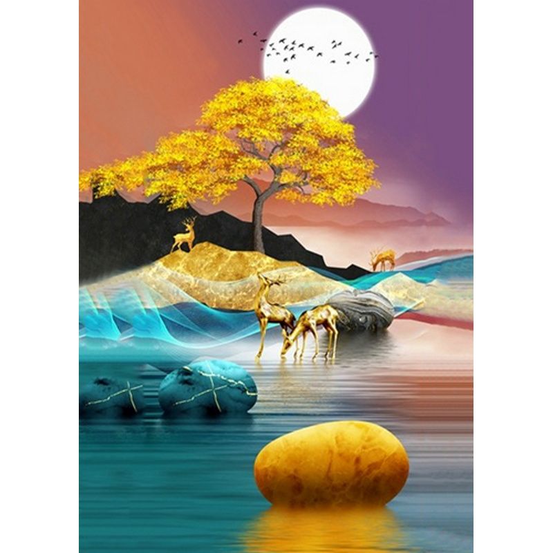 Алмазна мозаїка Strateg ПРЕМІУМ Китайський ландшафт без підрамника розміром 30х40 см (JSDF82151)