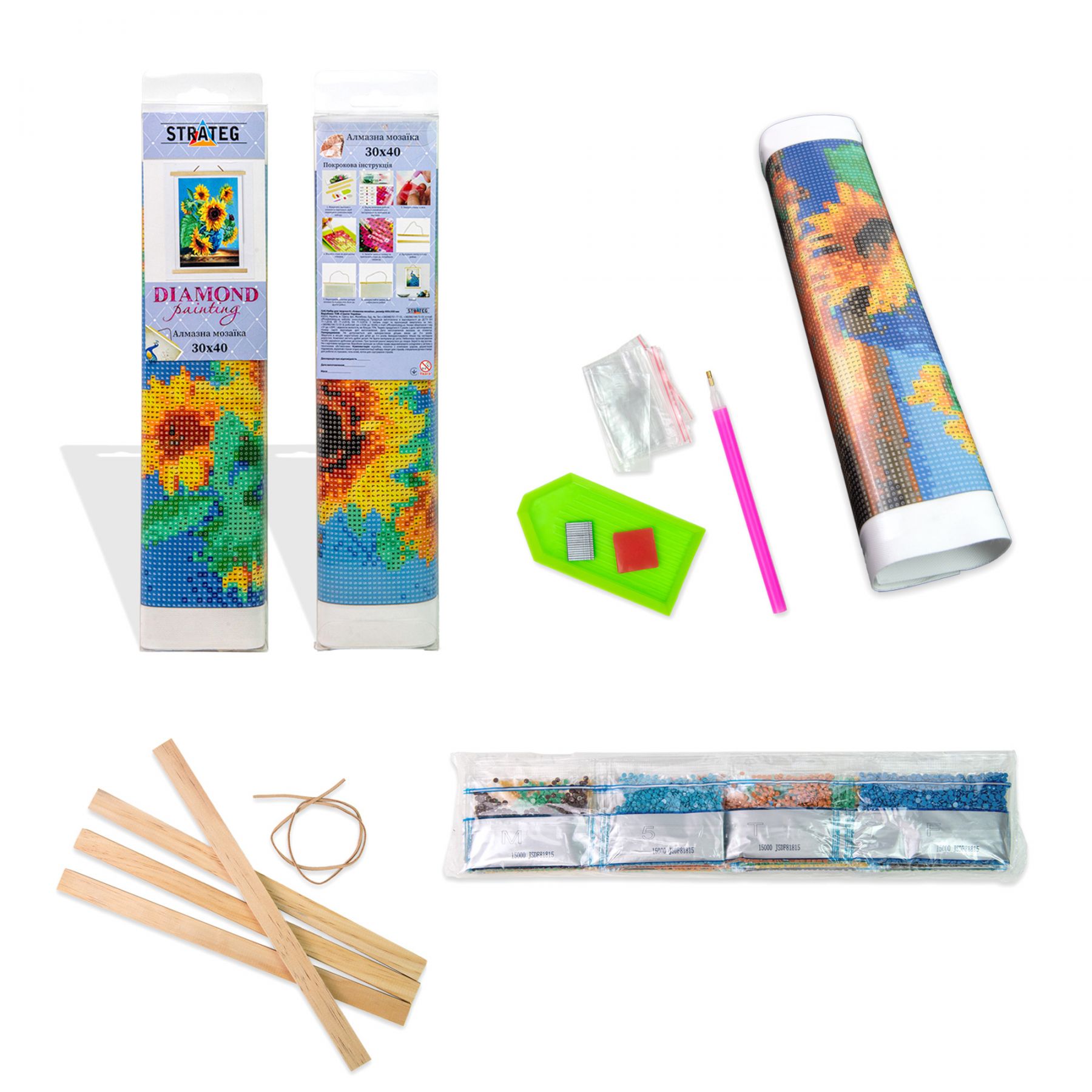 Набір складається з наступних складових:♦ акрилові каміння-стрази різного кольору;♦ стилус для викладання стразів;♦ гель-клей;♦ лоток для сортування каміння;♦ інструкція;♦ бавовняне полотно з клейовим шаром;♦ чотири рейки.Алмазна картина - гарний подарунок для тих, хто любить створювати красоту власними руками!Увага! Колір стразів може відрізнятися від кольору на фото завдяки комп'ютерній обробці фото на сайті.