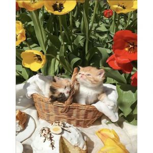 Алмазна мозаїка Strateg ПРЕМІУМ Котики серед тюльпанів розміром 30х40 см (HEG86041)
