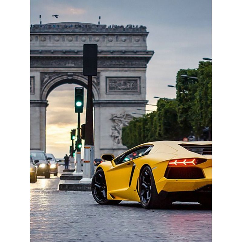 Алмазна мозаїка Strateg ПРЕМІУМ Машина біля Тріумфальної арки без підрамника розміром 40х50 см (GC86128)