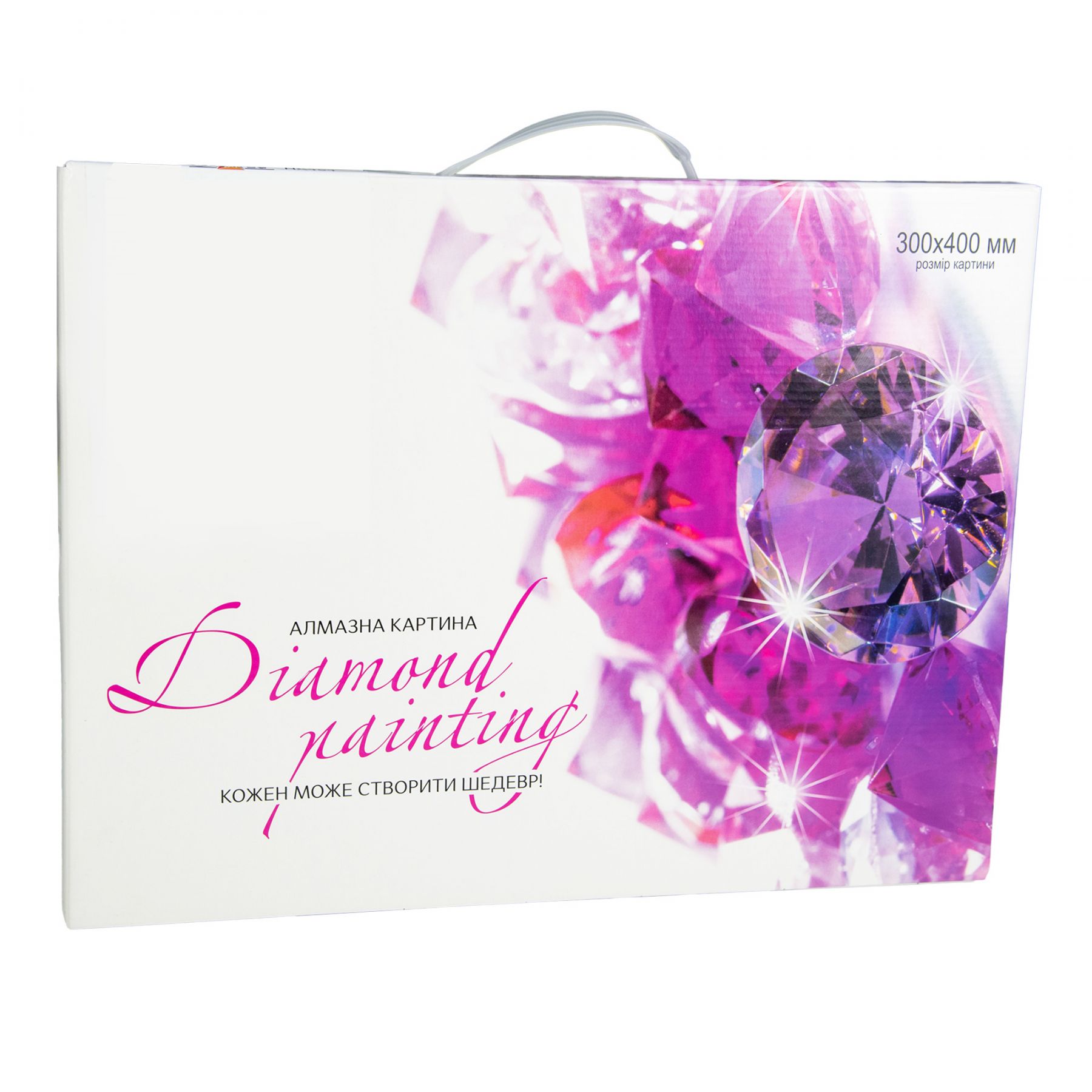 Комплектація:Полотно із клейовим шаром; дерев'яний підрамник; акрилові стрази згідно з комплектацією набору; пінцет для страз; спеціальна ручка-стилус для роботи зі стразами; гель-клей; лоток для сортування страз.