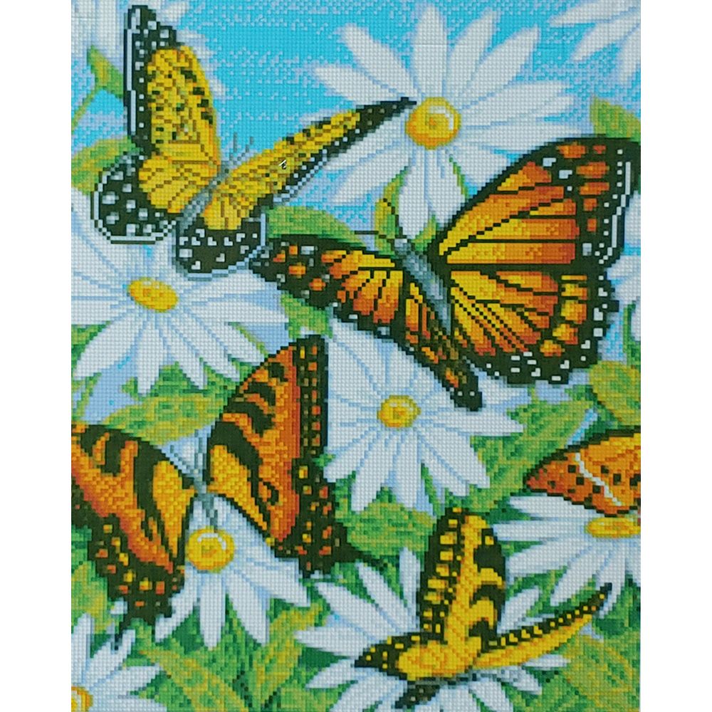 Алмазна мозаїка Strateg ПРЕМІУМ Метелики в ромашках розміром 40х50 см (D0021) - складність 3, кількість кольорів - 24.