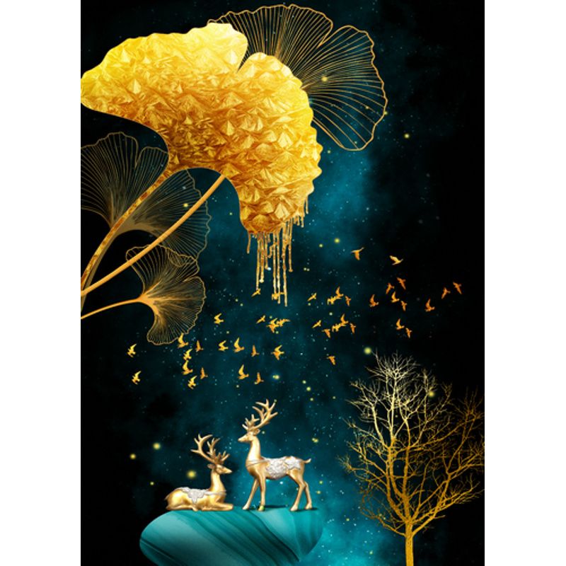 Алмазна мозаїка Strateg ПРЕМІУМ Олені в нічному сяйві без підрамника розміром 30х40 см (JSDF82142)