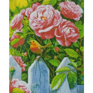 Алмазна мозаїка Strateg ПРЕМІУМ Пташка біля троянд розміром 40х50 см (D0018) - складність 3, кількість кольорів - 30.