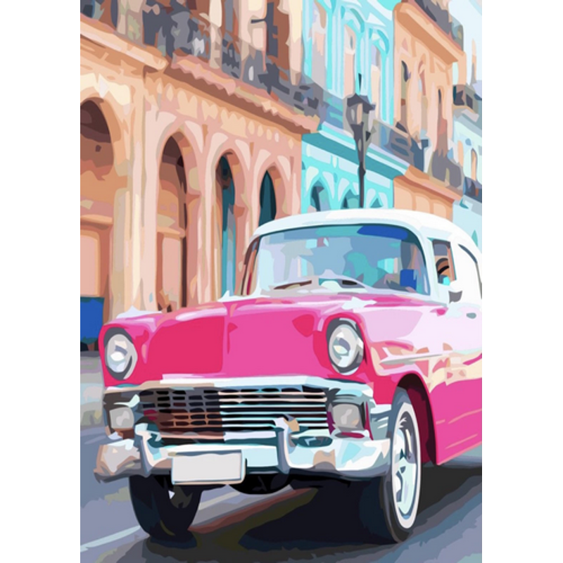 Алмазна мозаїка Strateg ПРЕМІУМ Рожеве авто Гавани без підрамника розміром 30х40 см (GD86110)