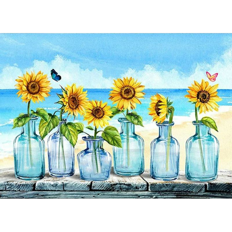 Алмазна мозаїка Strateg ПРЕМІУМ Соняшники біля моря без підрамника розміром 30х40 см (GD86086)