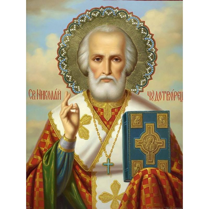 Алмазна мозаїка Strateg ПРЕМІУМ Святий Миколай Чудотворець без підрамника розміром 40х50 см (GC86112)