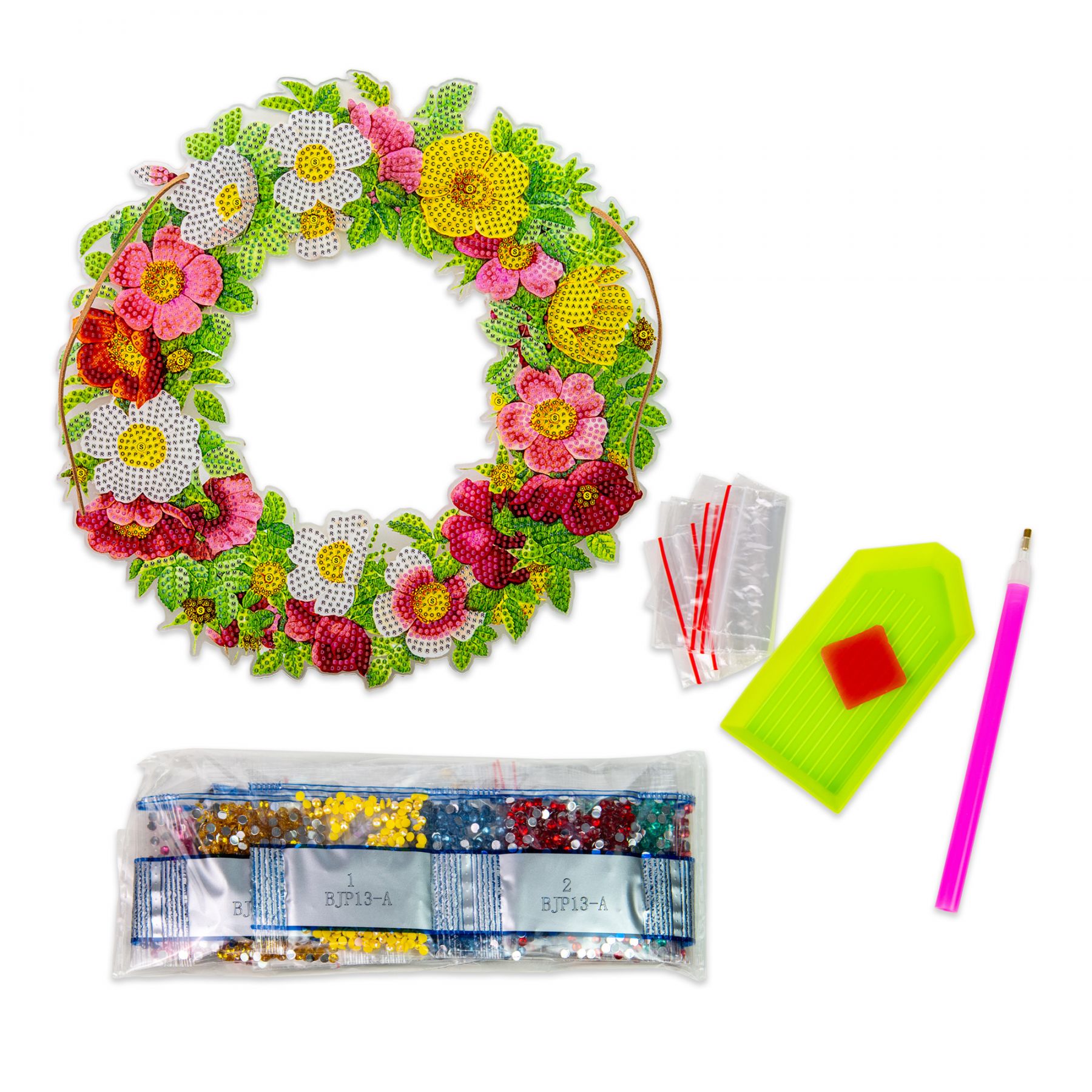 Алмазна мозаїка Strateg ПРЕМІУМ Віночок троянд підвісний розміром 30х30 см (HHE26391)