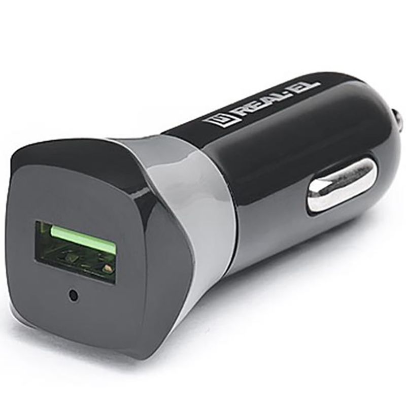 Автомобільний зарядний пристрій REAL-EL CA-30 QC3.0 (1USBx3A) Black/Grey