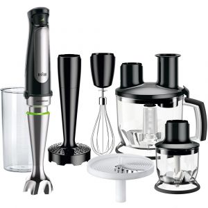 Чим більше ви готуєте і чим складніше страви, тим частіше виникають ситуації, коли обходитися ручним змішуванням продуктів і навіть допомогою простого міксера вже не виходить. Логічним виходом стане покупка блендера Braun MQ 7087 X. Він має дві закриті чаші-подрібнювачі (на 1,5 і 0,35 л. об’ємом). Кількість продуктів всередині легко визначити по мірній шкалі на стінках. Причому кожна чаша, це не просто закрита ємність, а повноцінний окремий аксесуар з власними насадками.
