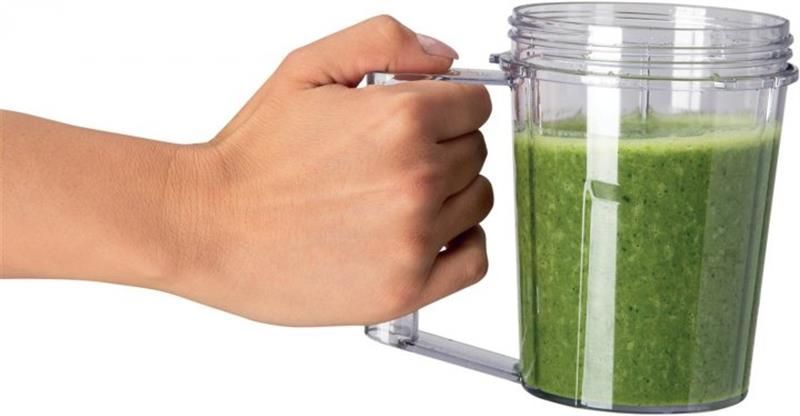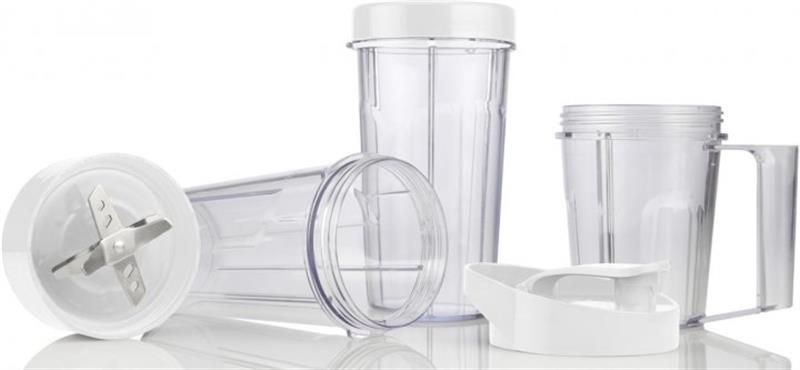 Комплектація:блок двигуна, велика чаша, маленька чаша, стакан для пиття, ніж NutriBlade, кришка з носиком для пиття, кришка для зберігання, інструкція