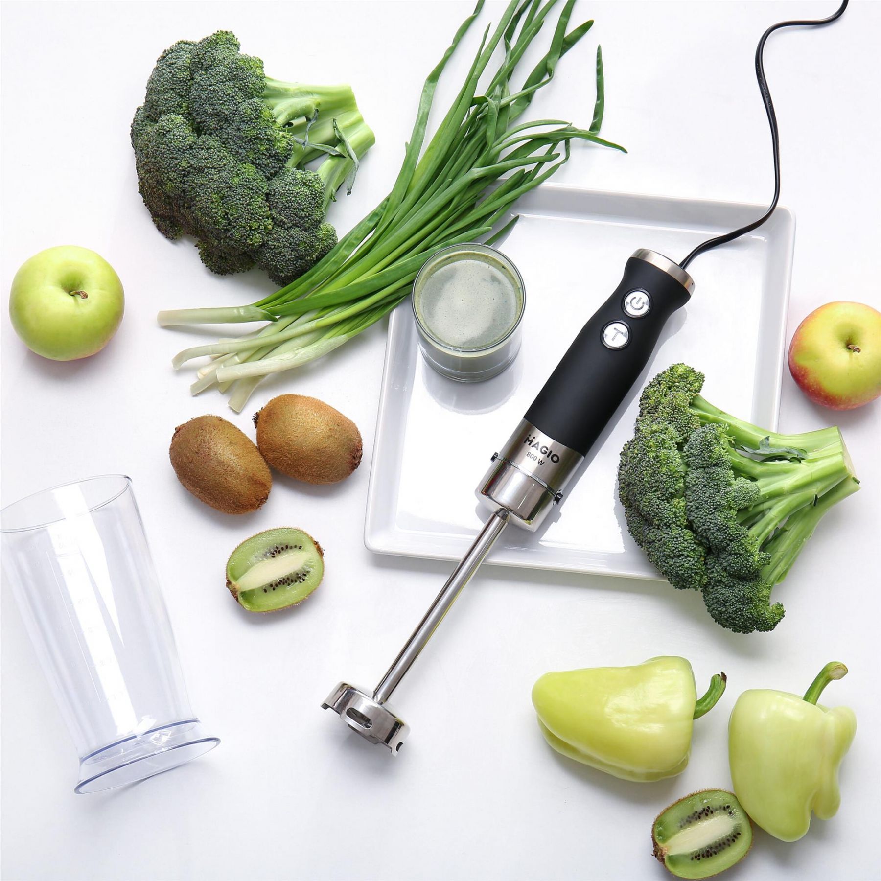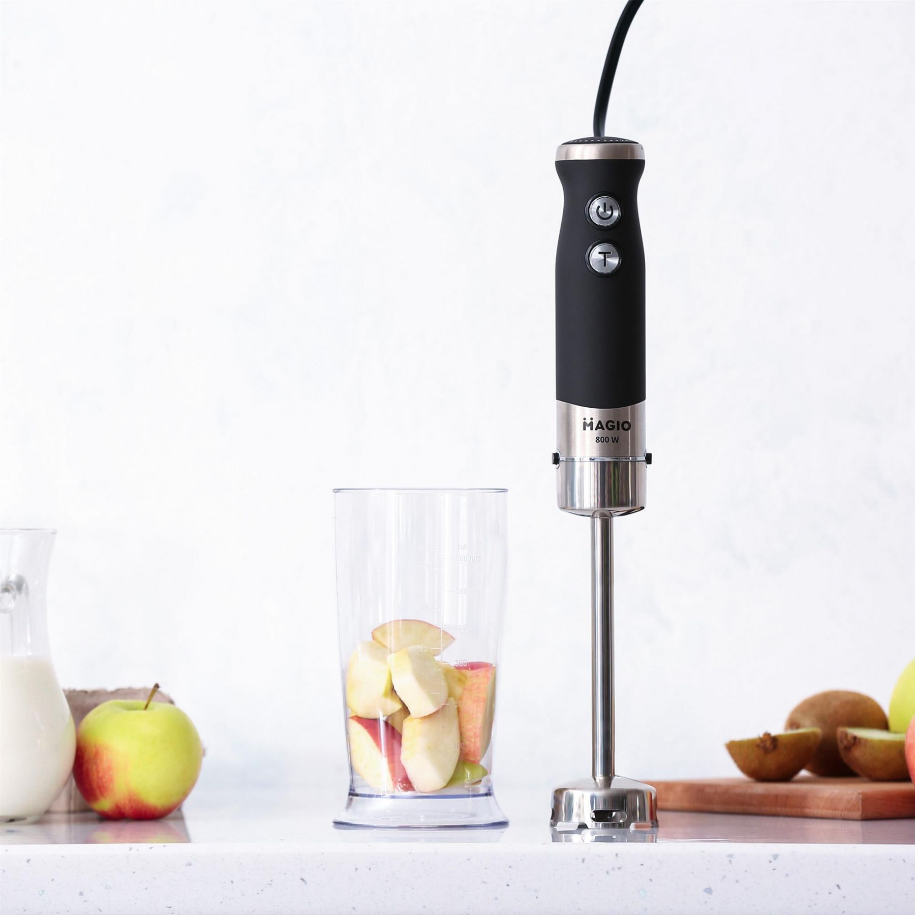 Блендер MG-647 дозволить різноманітнити ваше меню та приготувати новий кулінарний шедевр. Потужність блендера становить 800 Вт, що забезпечує безшумну ефективну роботу протягом тривалого часу. Занурювальна частина виконанана з нержавіючої сталі – запорука стійкості до зношування і довговічності. Блендер може працювати на 13 швидкостях, що плавно перемикаються. Перемикач знаходиться на держаку приладу, що дуже зручно. До комплекту входить пластиковий мірний стакан. Ці властивості в поєднанні з компактним дизайном роблять блендер незамінним помічником на вашій кухні.