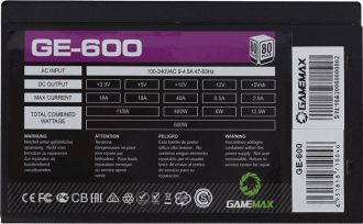 GE-600 від GameMax - універсальний і надійний блок живлення потужністю 600 Вт, який відповідає сучасним потребам персональних комп"ютерних систем.