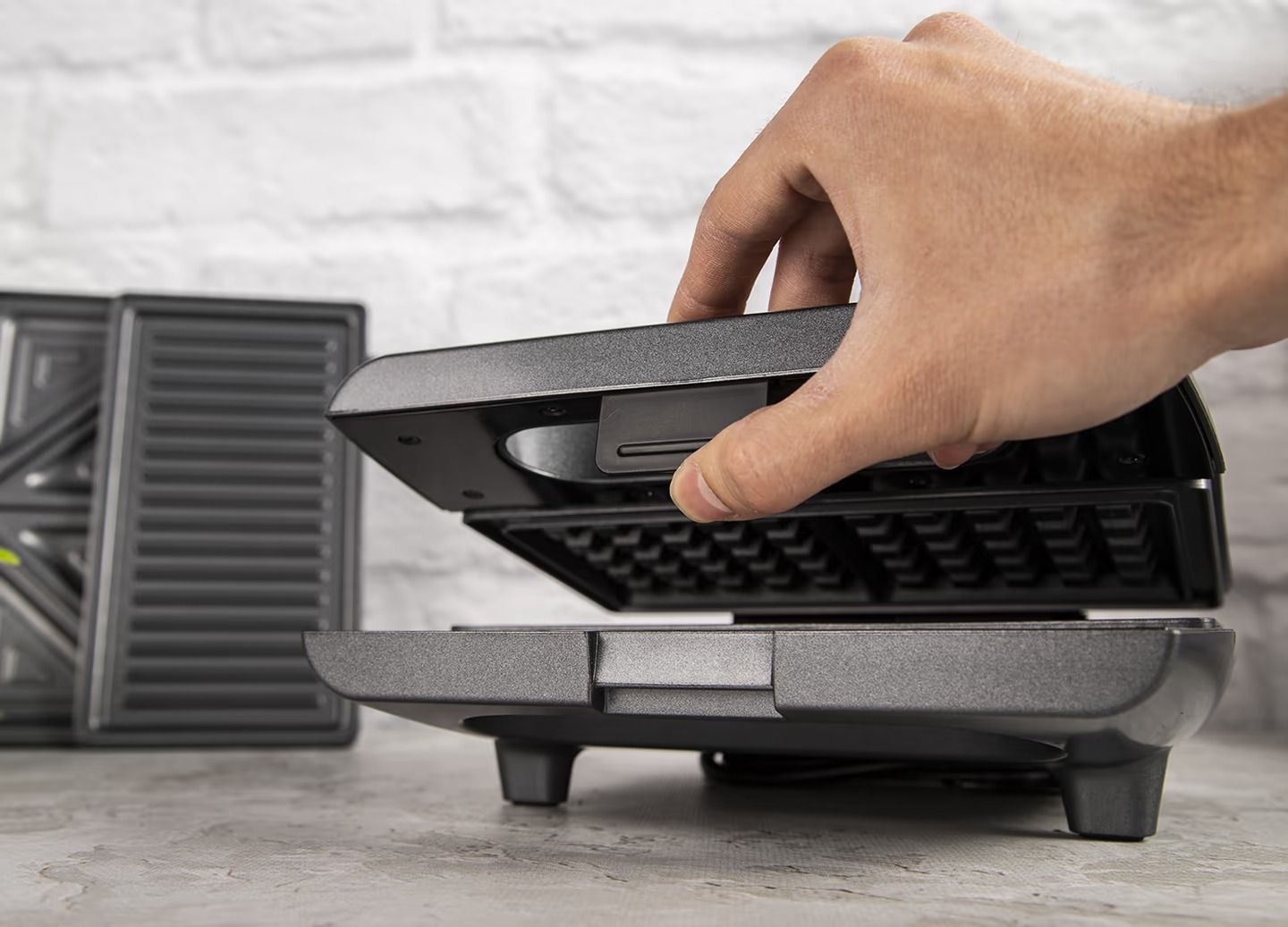 Мультимейкер (Бутербродниця-Вафельниця-Гриль) Gorenje SM703GCG Прилади цієї лінійки швидко приготують здорову їжу, м’ясо, риба, овочі або смачний гарячий бутерброд. Швидкий час приготування, потужне і рівномірне нагрівання, а також безпосередній контакт із жароміцними пластинами запечатують соки в продуктах, тим самим зберігаючи їх усі поживні властивості. У комплектації вона має пластини для гриля та приготування вафель. Тому за допомогою даного приладу ви зможете урізноманітнити раціон домашнього меню, приготувавши на грилі невеликі порції м’яса, риби чи овочів, а також порадувати рідних смачними вафлями бельгійськими.