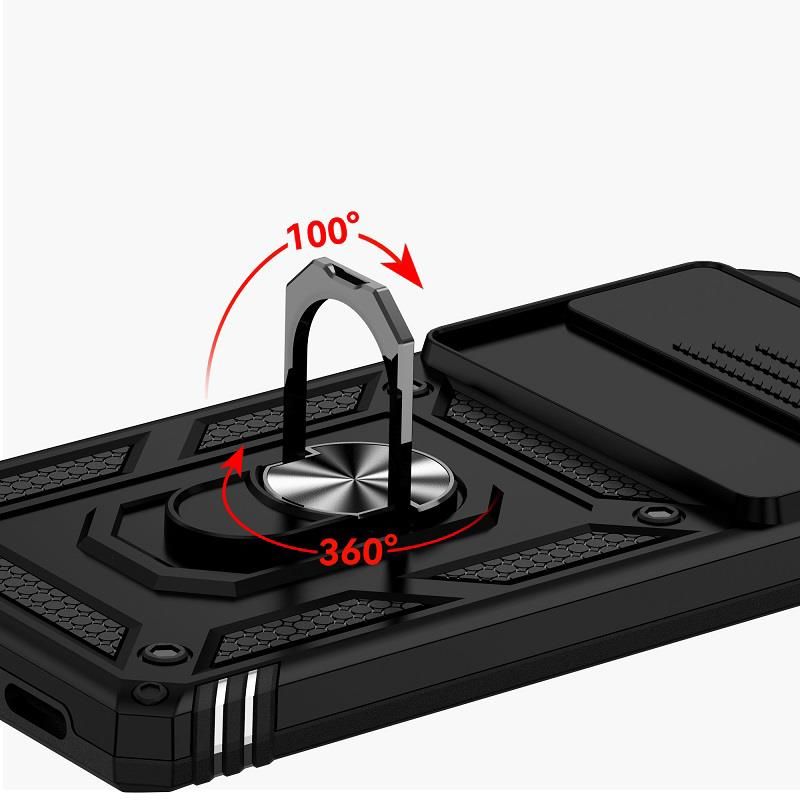 Гнучка силіконова панель має жорсткий металізований корпус і кільце-підставку для пальця. Чохол здатний витримати навіть сильні удари і подряпини.