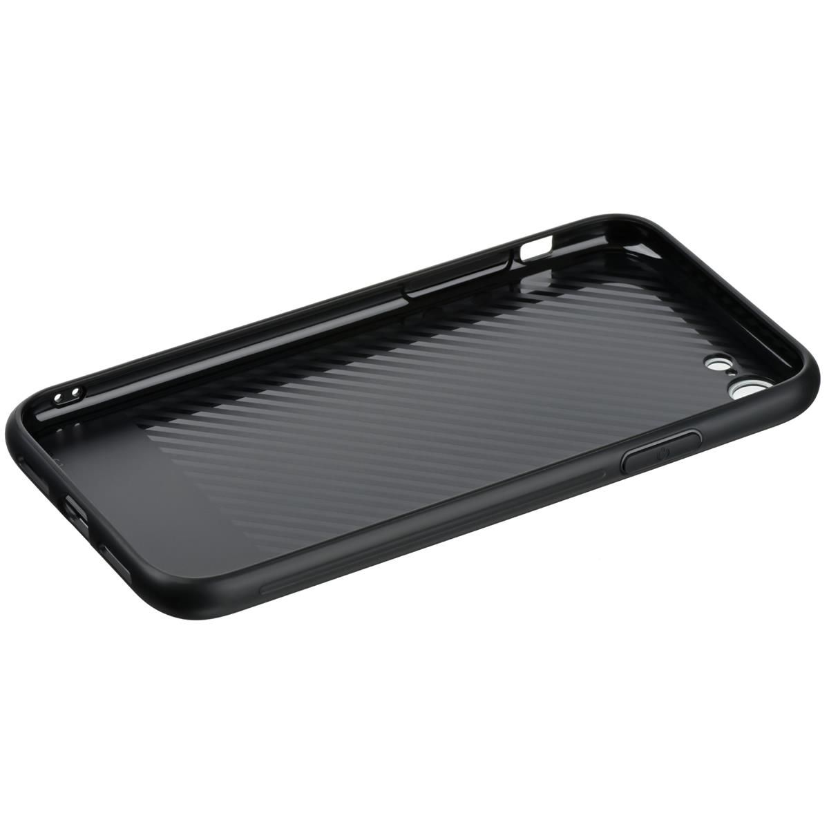Основний матеріал тут - еластичний силікон (TPU), який щільно облягає корпус по периметру і добре пом'якшує удар при падінні. Спинка доповнена загартованим склом, що прикриває візерунковий шар.