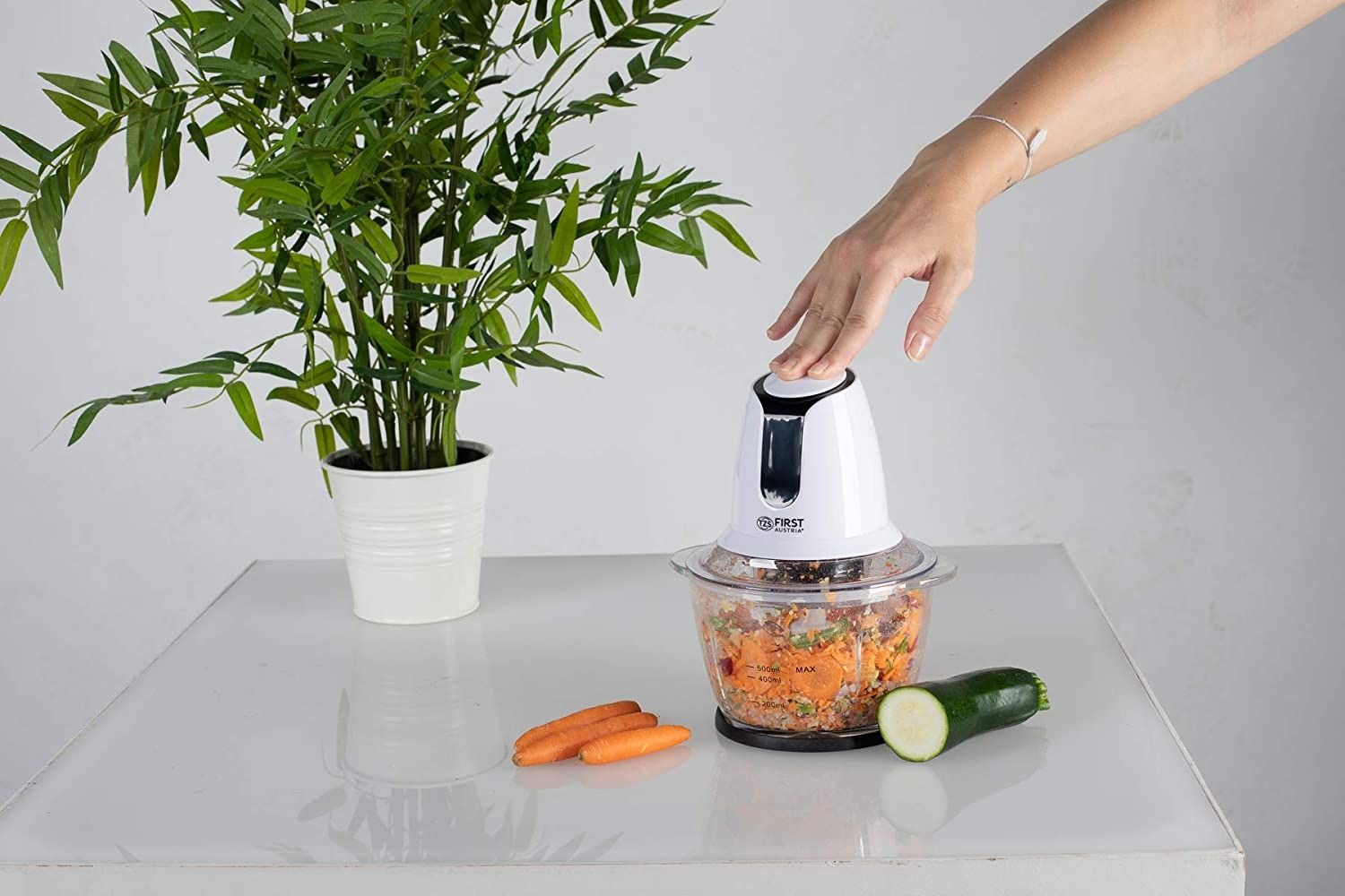 Чопер First Austria FA-5114-9 – компактний і потужний подрібнювач для щоденного використання на кухні. Оснащений надійним мотором потужністю 500 Вт, він швидко впорається з подрібненням овочів, фруктів, зелені, горіхів чи м’яса.