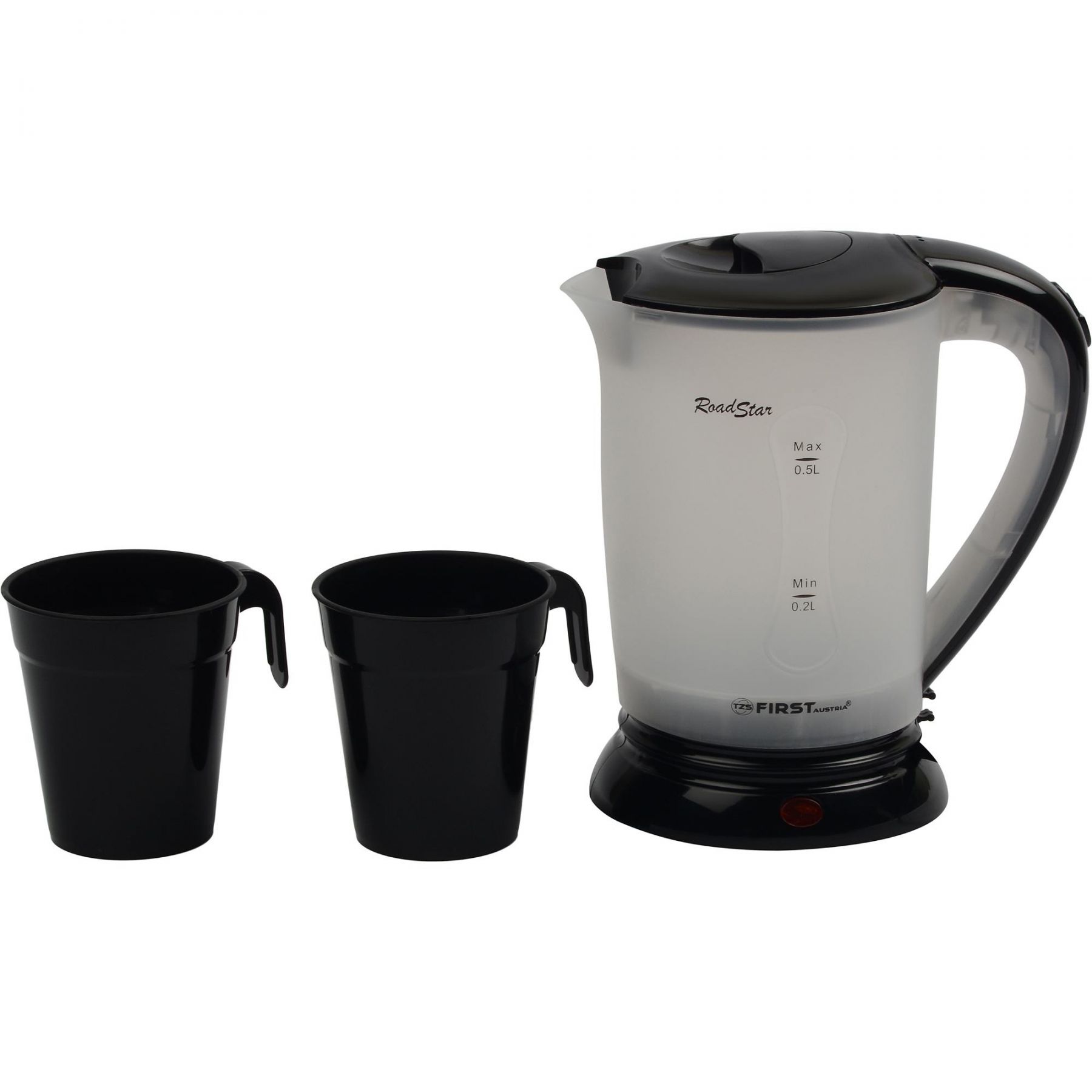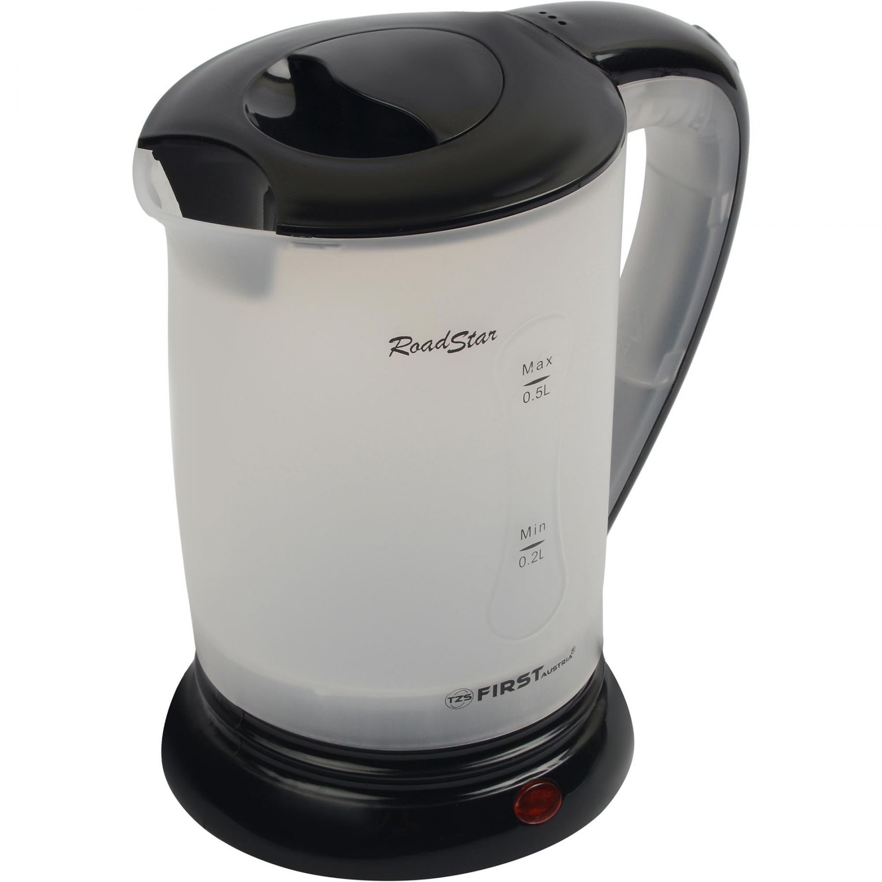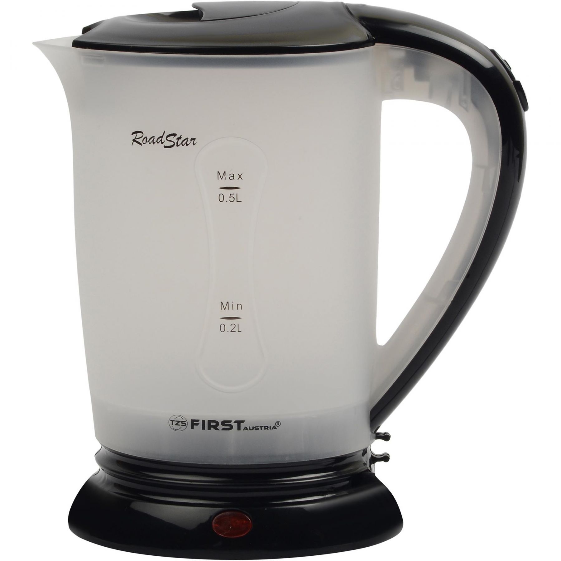 Корисний обсяг електрочайника First FA-5425-2-BA: 0,5 л. Його цілком достатньо для задоволення потреб одного, двох осіб в умовах поїздки. Споживана потужність дорожнього електрочайника, дозволяє вскип'ятити воду до п'яти хвилин. За типом нагрівального елемента, модель відноситься до дискового (прихованого) типу. Перевагою дискового типу над спіральним, є висока площа контакту з водою і швидкість її нагрівання. Трубчастий електронагрівач (ТЕН) розташований в днищі корпусу.