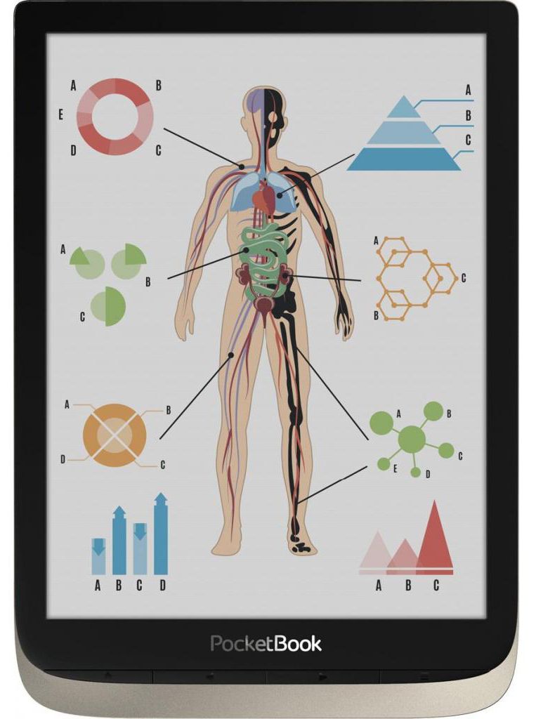 Безпечна для очей підсвічування екрану забезпечує користувачам максимальну свободу читання з PocketBook 740 Color при будь-якому освітленні і в будь-який час доби.