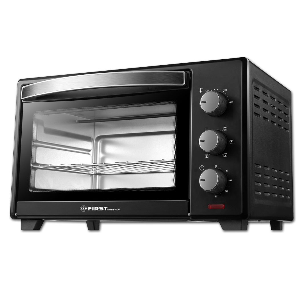 Повністю чорна, загострена з окантовкою з нержавіючої сталі, компактна міні-духовка з внутрішнім підсвічуванням і безступінчатим регулюванням температури до 230°С не тільки добре виглядає, але й економить час і нерви при приготуванні їжі. Запекти, приготувати на грилі, підсмажити, підсмажити – все виходить без особливих зусиль. Ви також заощаджуєте гроші в порівнянні зі звичайними духовками: міні-піч у багато разів більш енергоефективна.