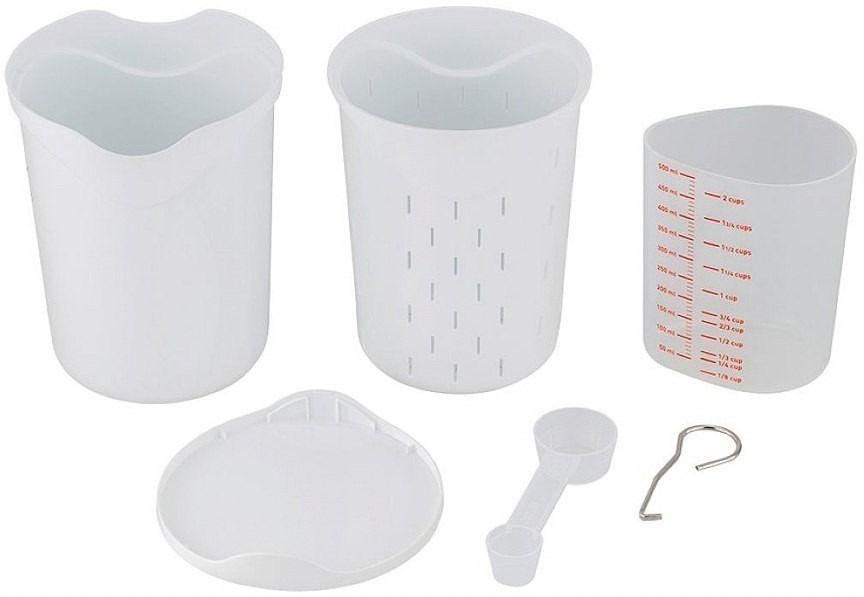 У спеціальній каструлі приготуйте до 1 л йогурту. Використовуйте фільтр, що входить до комплекту, щоб приготувати сир.