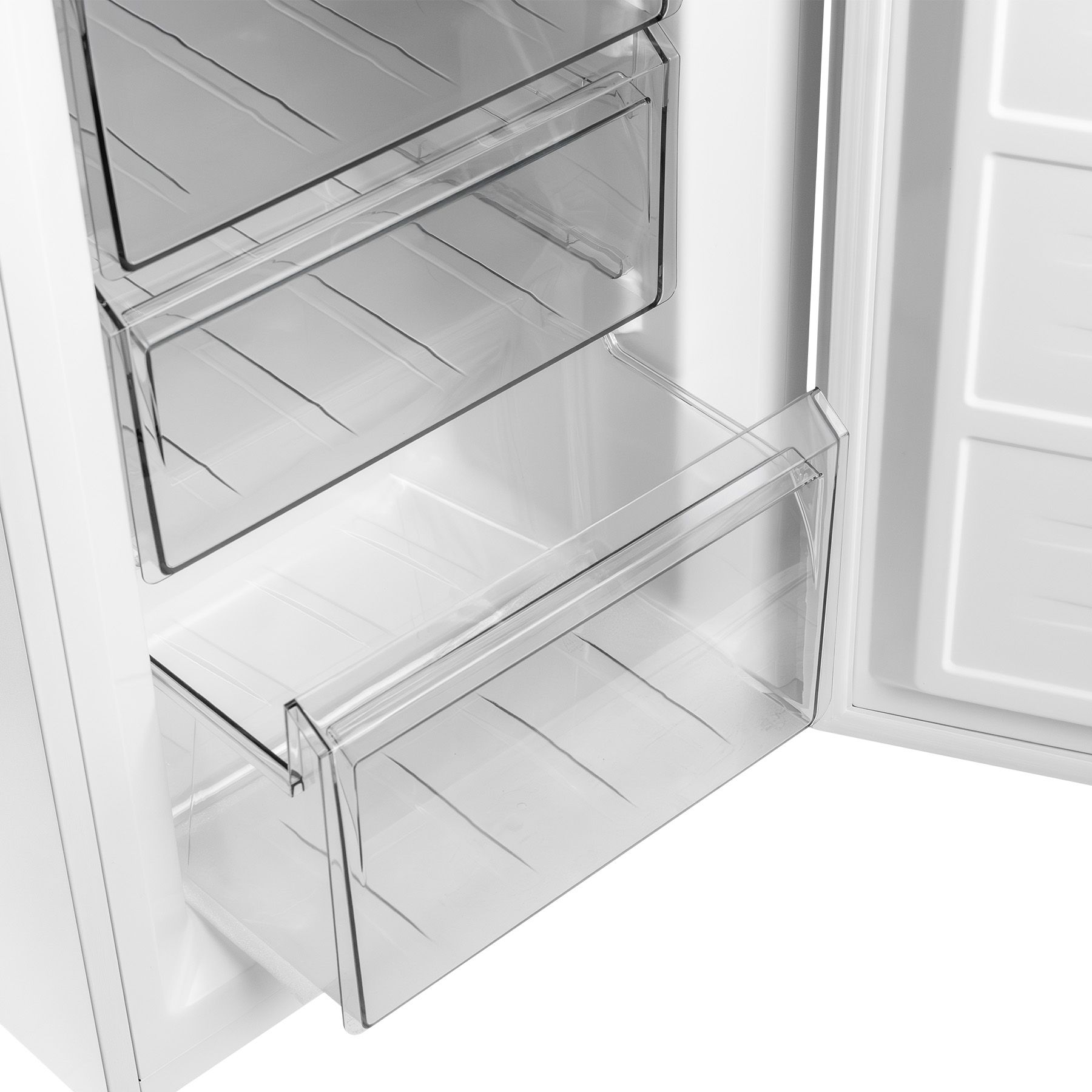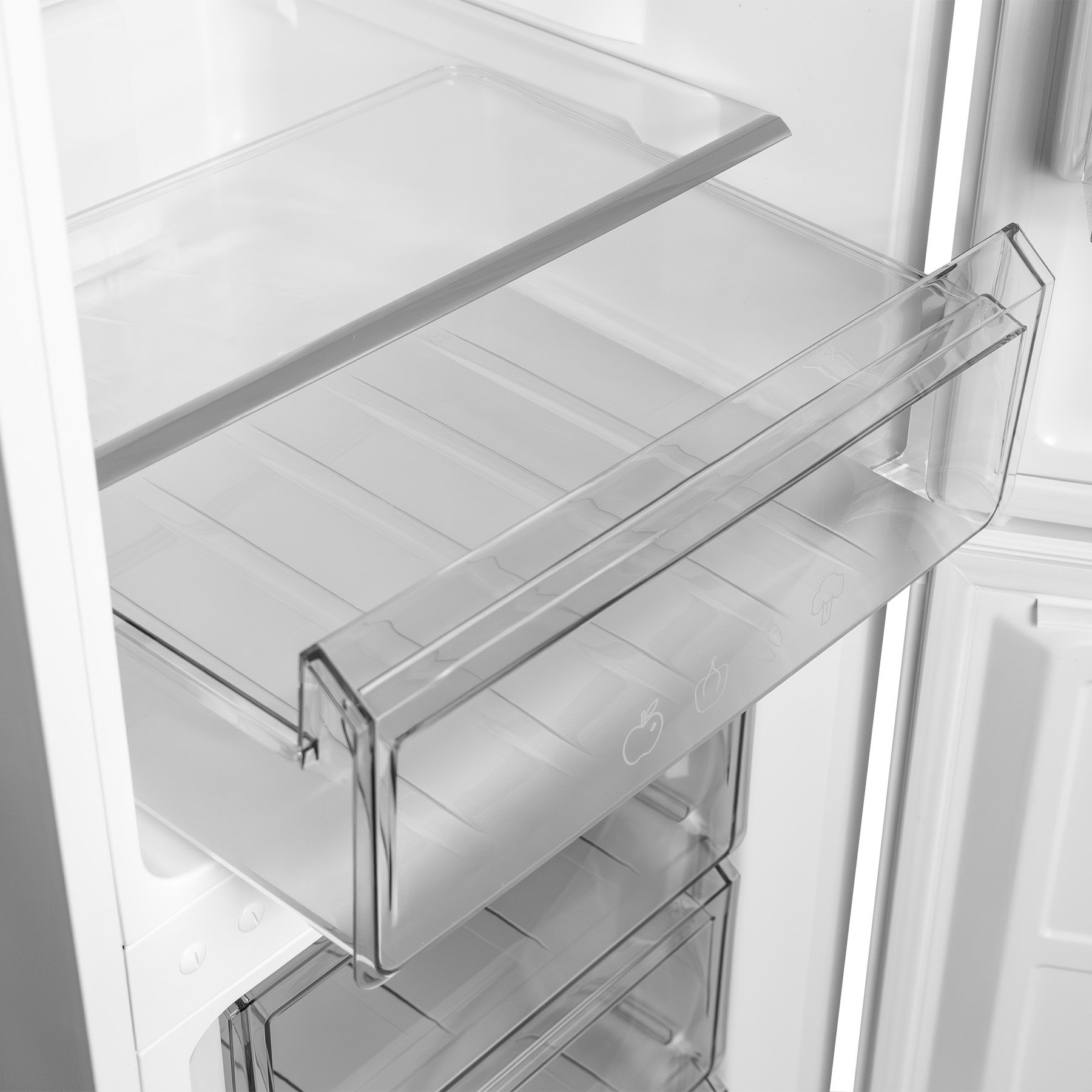 Місткість відсіку для свіжих продуктів до 199 літрів дозволяє розмістити всередині все, що необхідно родині з 4-5 осіб. Тут передбачено чотири скляні полиці, що регулюються за висотою, а також ящик для овочів та фруктів. На дверцятах три окремі пластикові ніші для зберігання яєць, соусів та пляшок з напоями. Морозильна камера на 71 літр має три ящики (два менших і один більший), щоб глибоко заморозити якомога більше м’яса, фруктів, овочів та риби.