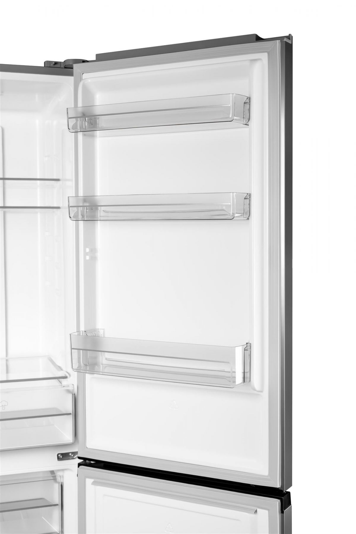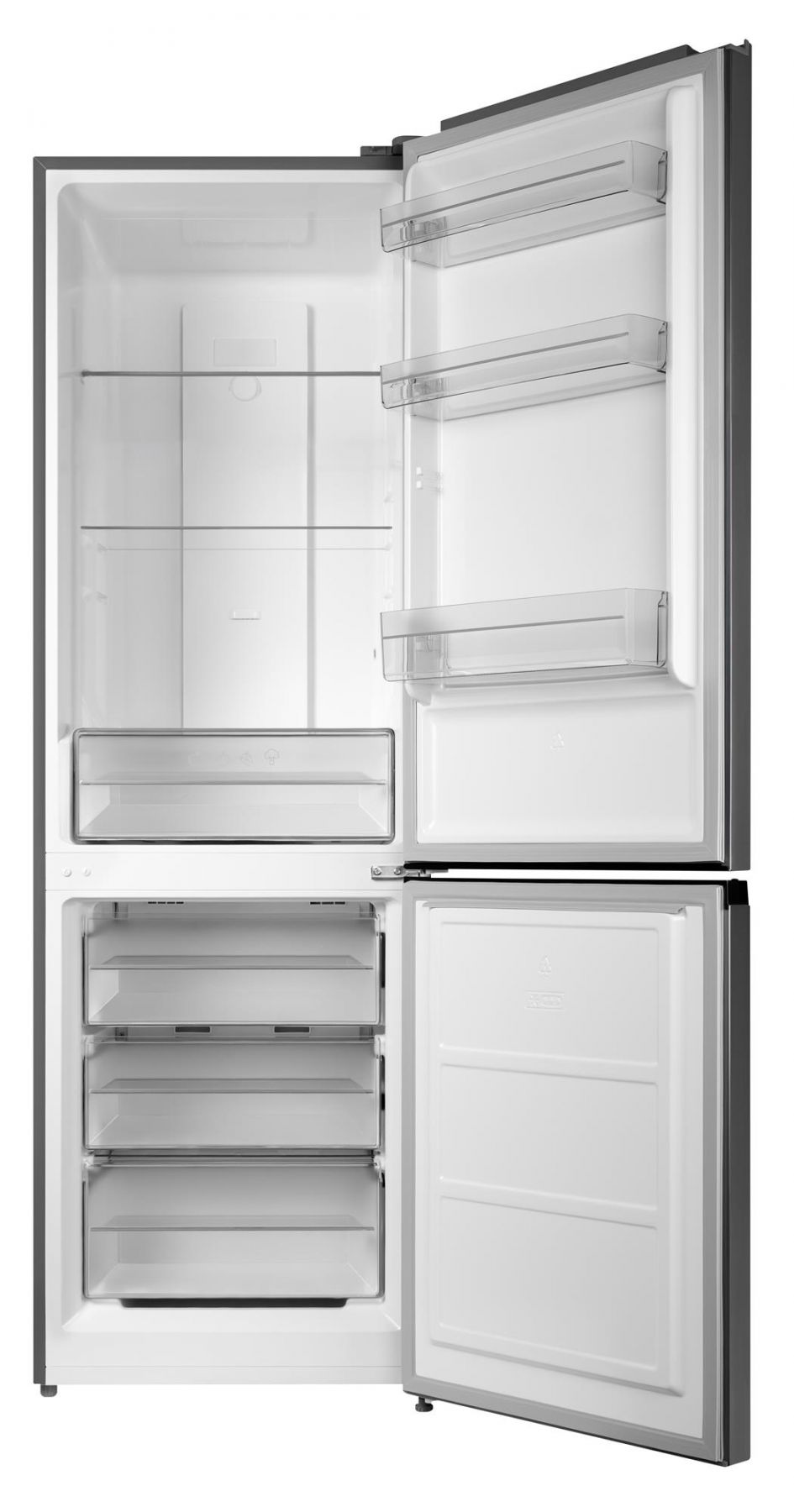 Модель NFN-185X виконана у металевому кольорі, що гармоную з сучасними кухонними інтер’єрами різних тонів. Холодильник висотою 188 см має два відділення: