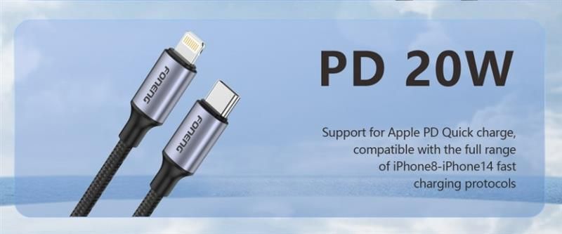 Кабель Foneng X95 Metal Head Braided Cable USB-C - Lightning (M/M) PD20W, 1.2 м, Black (X95-CA-TCIP)