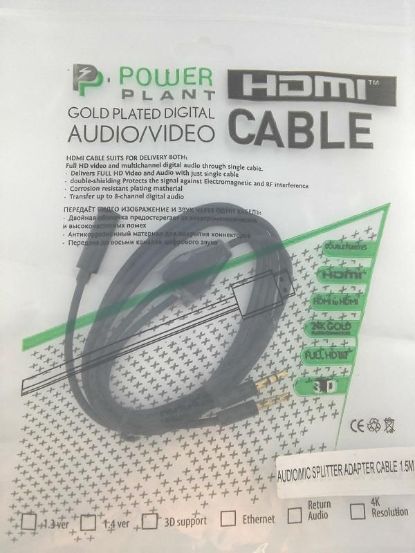 Кабель PowerPlant (DV00DV4057) 2х3.5mm(M)-3.5mm(F), 1.5м, Black