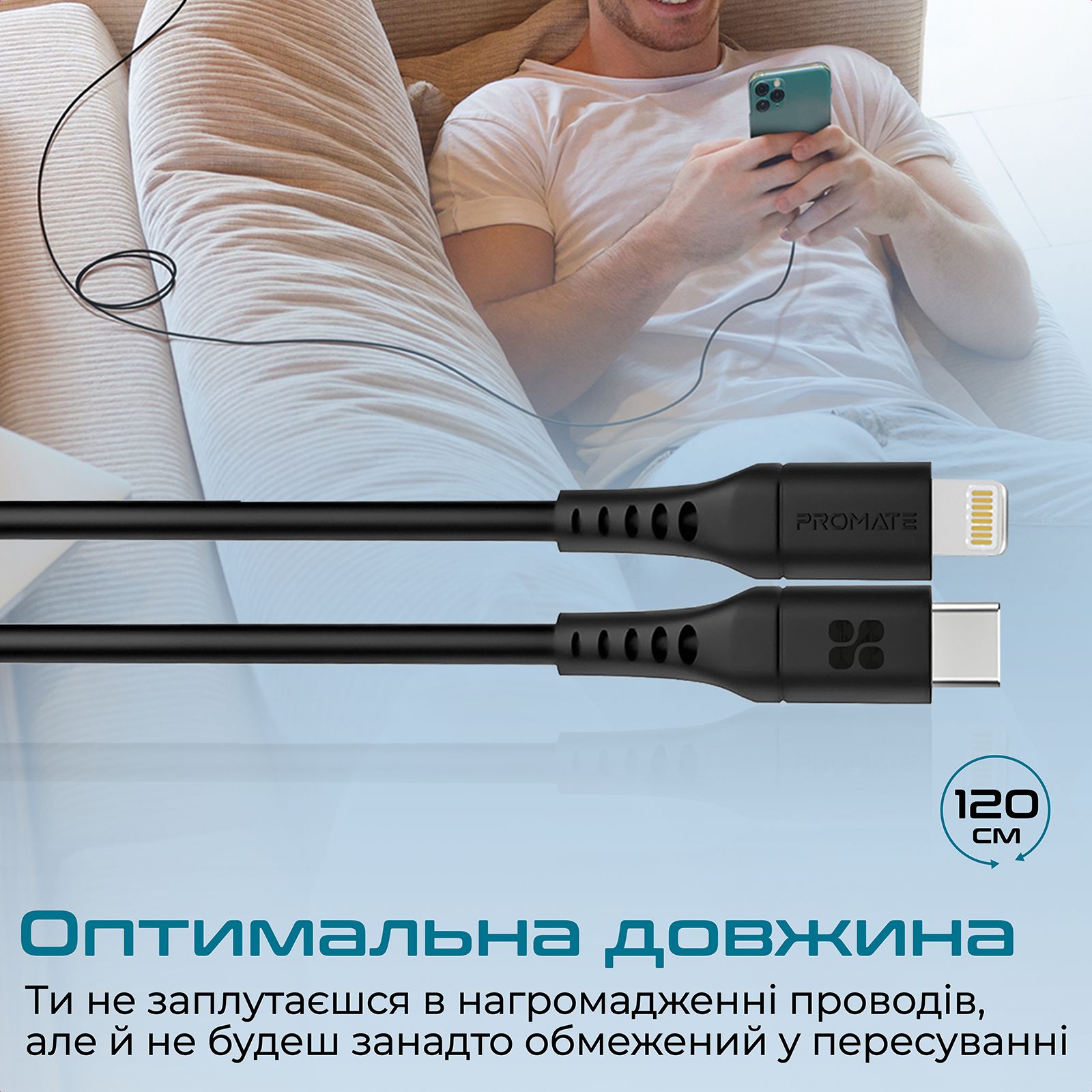 Кабель Promate PowerLink USB Type-C - Lightning (M/M), 1.2 м, Black (powerlink-120.black)