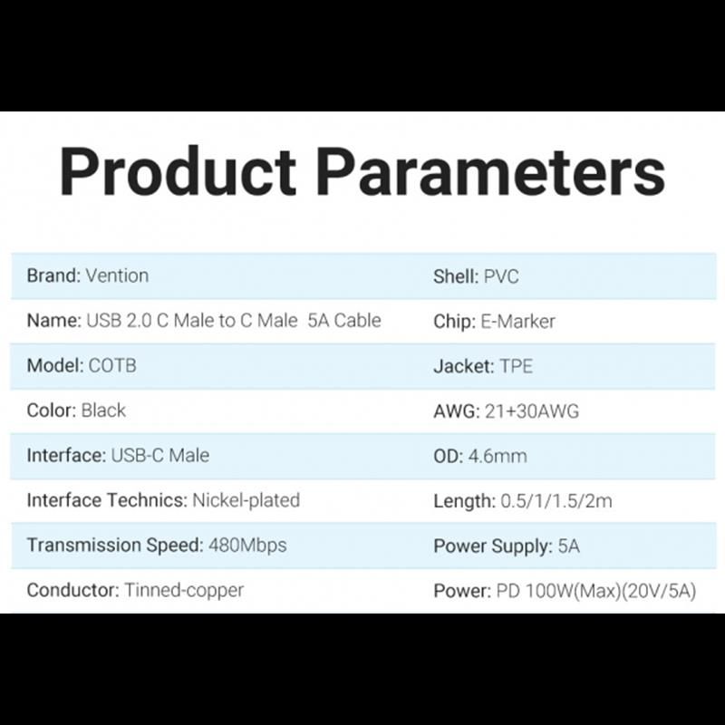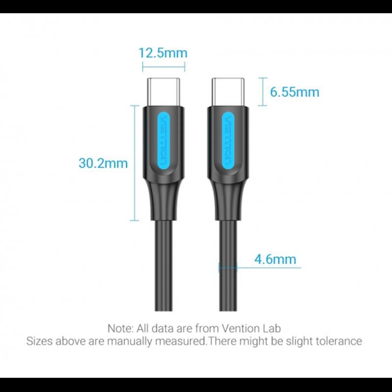 Кабель Vention USB Type-C - USB Type-C (M/M) TPE Round PD 100W, 5A, 1 м, Black (COTBF)