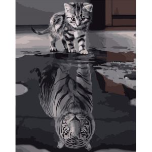 Картина за номерами Strateg Кіт і тигр без підрамника розміром 40х50 см (BR007)