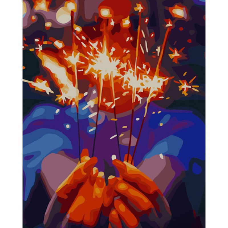 Картина за номерами Strateg ПРЕМІУМ Бенгальські вогники в руках розміром 40х50 см (GS770)