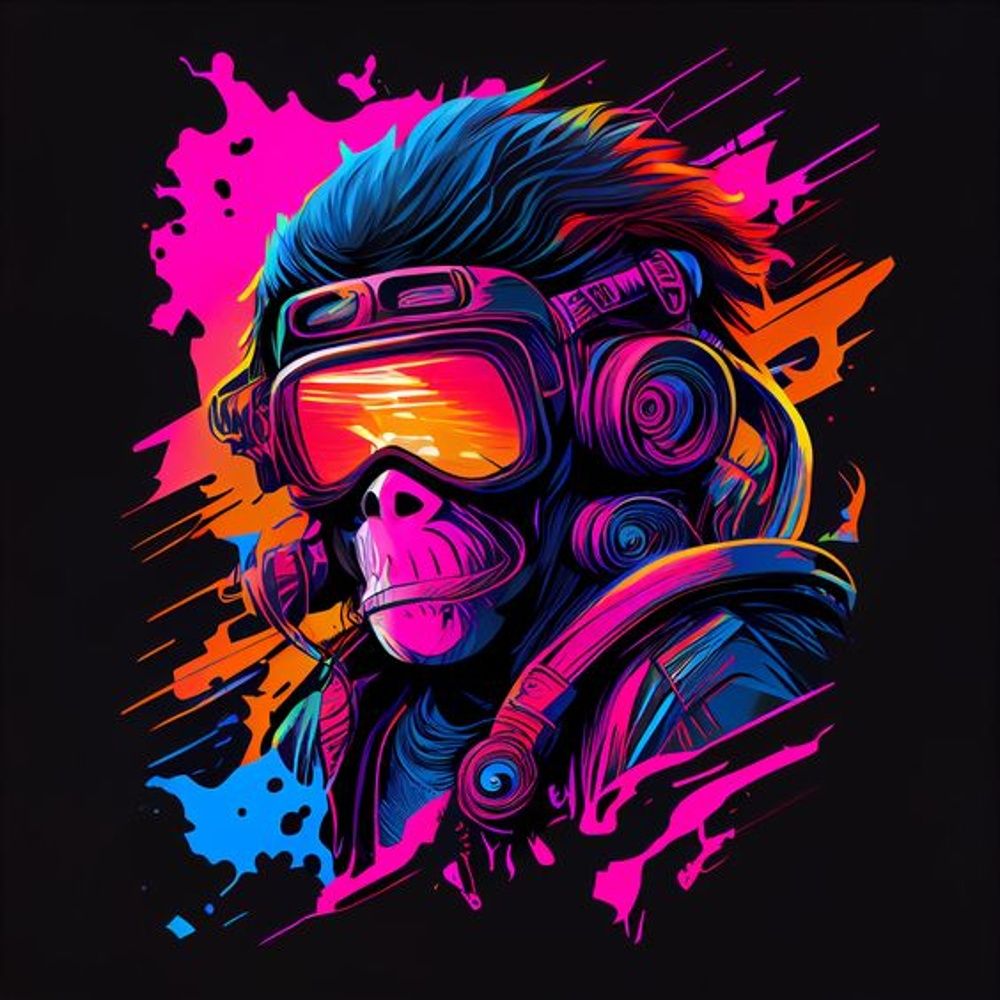 Картина за номерами Strateg ПРЕМІУМ Брутальна мавпа на чорному фоні розміром 40х40 см (AV4040-16)