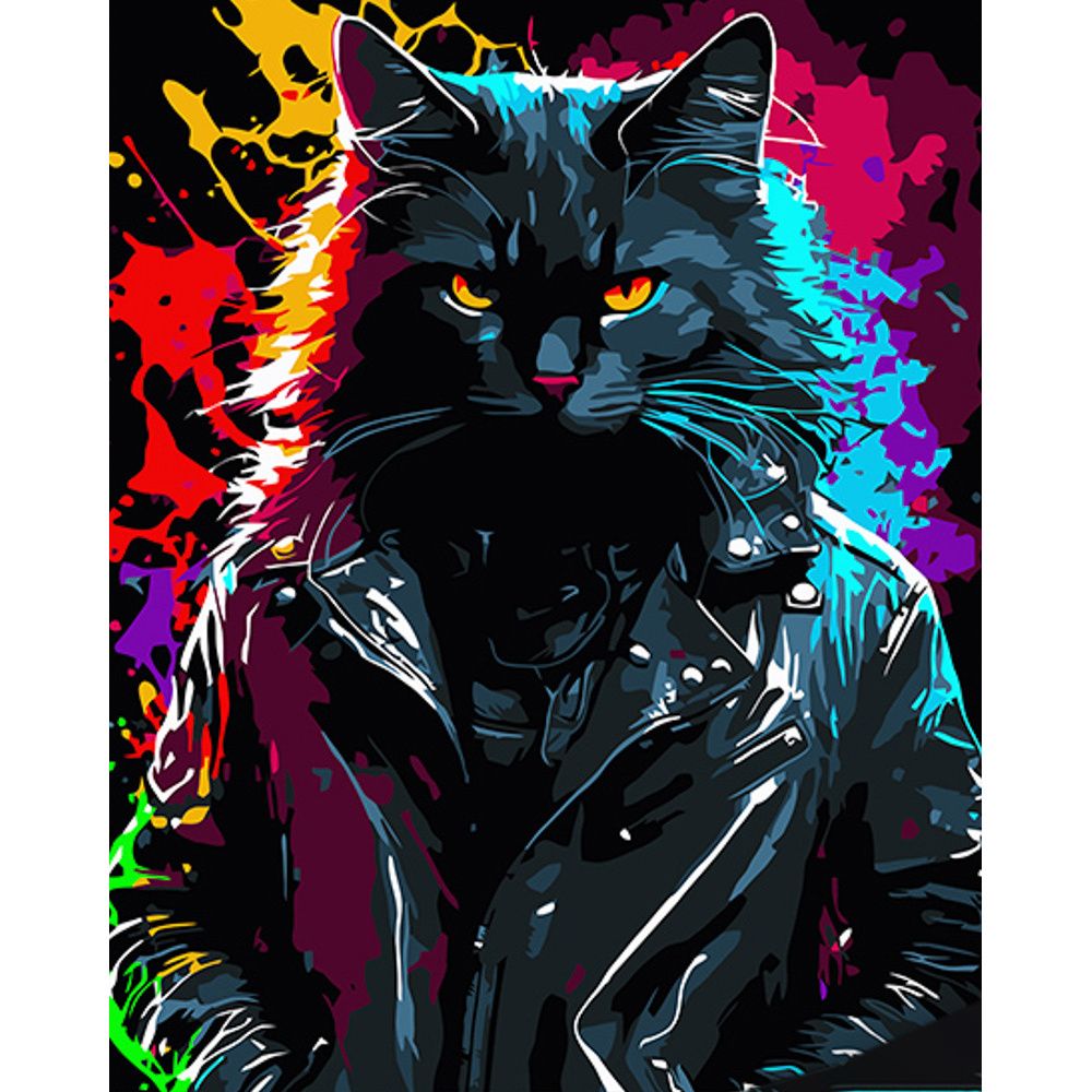 Картина за номерами Strateg ПРЕМІУМ Брутальний кіт у курточці на чорному фоні розміром 40х50 см (AH1015)