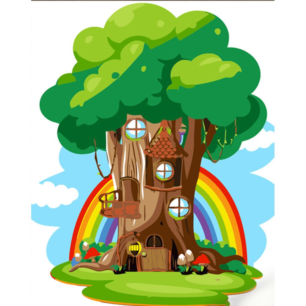 Картина за номерами Strateg ПРЕМІУМ Будиночок на дереві з лаком розміром 30х40 см (SS6728)