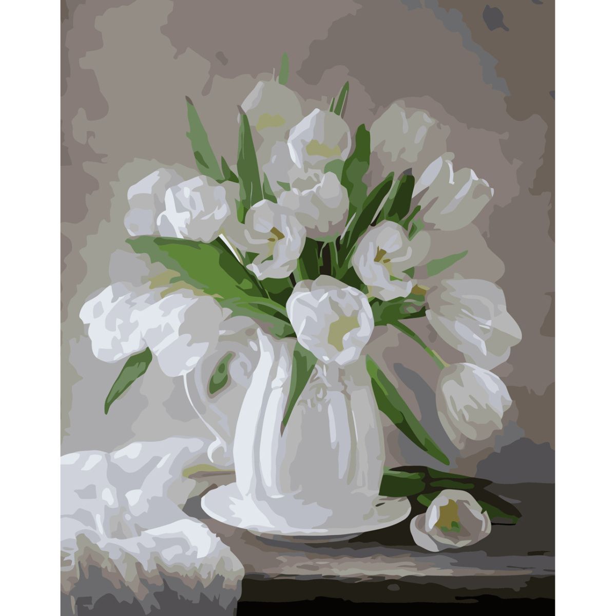 Картина за номерами Strateg ПРЕМІУМ Букет білих тюпанів з лаком розміром 30х40 см (SS-6607)