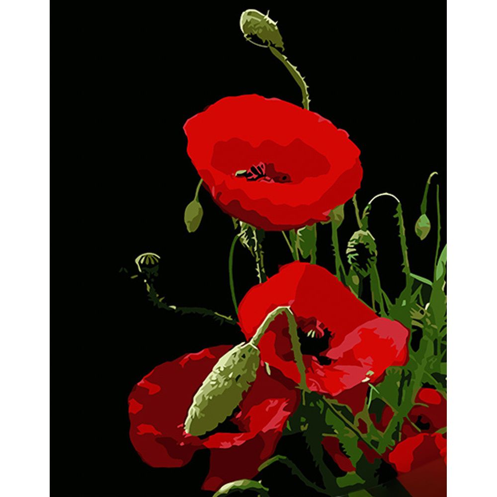 Картина за номерами Strateg ПРЕМІУМ Червоний мак на чорному фоні розміром 40х50 см (AH1024)